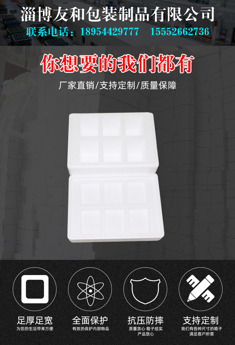 ????淄博友和包裝制品有限公司是專業(yè)的山東泡沫包裝箱加工廠家,本廠主要產(chǎn)品有:泡沫包裝箱,泡沫保鮮箱,水果蔬菜泡沫包裝箱,水果蔬菜泡沫保鮮箱,瓷磚泡沫包裝箱等,產(chǎn)品暢銷全國,深受用戶好評。泡沫包裝定做可以聯(lián)系我們網(wǎng)站 http://m.nearcats.com/ 上電話,我們會第一時(shí)間跟您聯(lián)系。